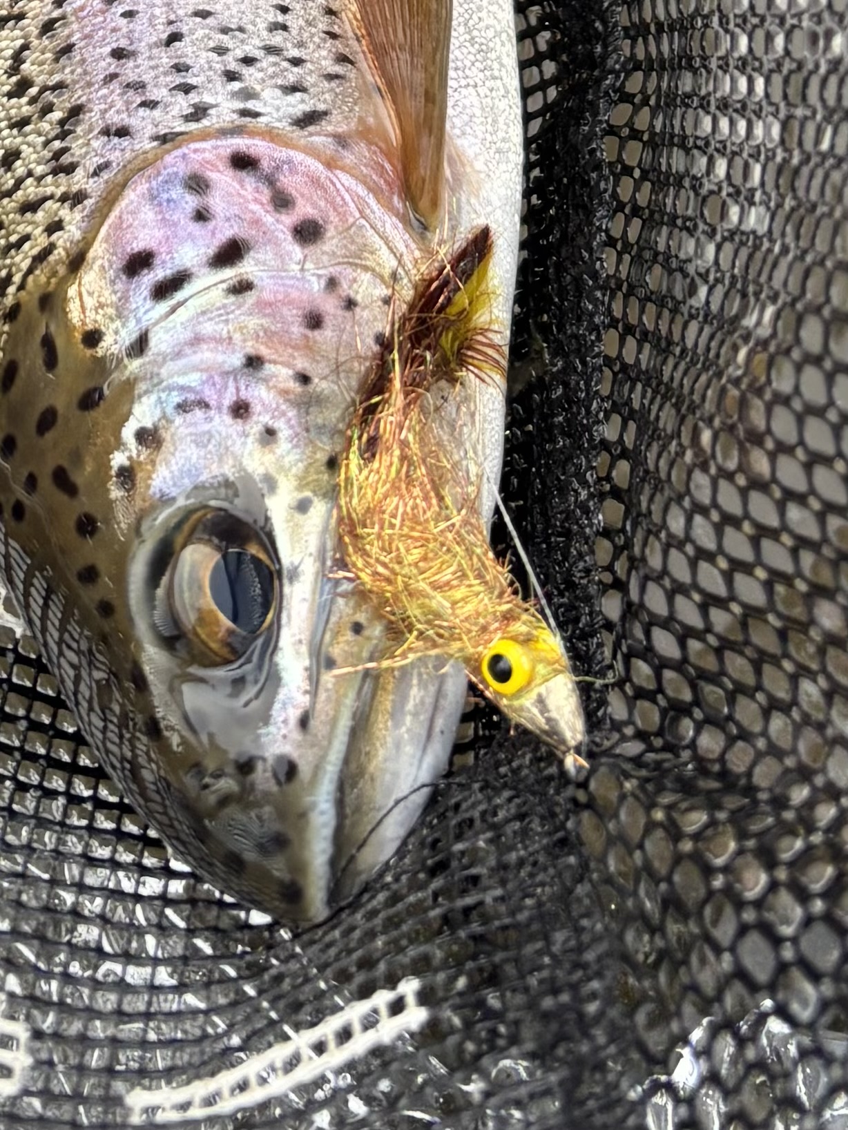 Our buddy Enzo went out fishing this weekend and had some fresh information to report. He hit up the Microburst this past Saturday and cleaned up with, of all things, an articulated stonefly nymph pattern he designed.